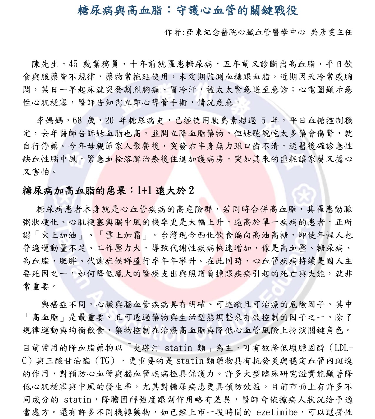 亞東紀念醫院 心臟血管醫學中心 吳彥雯主任